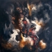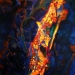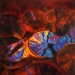 One in a series of paintings inspired by the Icelandic rock formation móberg, which forms in volcanic eruptions under glaciers or in water. This particular painting is inspired by the rapid cooling of the magma in explosive phases of the eruption and the formation of glass shards (tephra) in the frightening eruption column. In most of the paintings of this series some collage is used as well as oils. The collage makes use of specially computer produced molecular and crystal models. Thus the paintings vary in scale from mountain size to microscopic, all in the same picture.