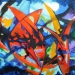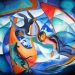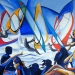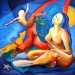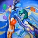 The members of the family, dogs included enjoy a day at the beach. I have tried to keep the colours pure and light and allow the figures to appear to hang in space, each enjoying life in their own particular way, yet all together (the circle).