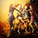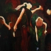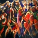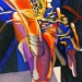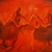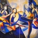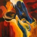 This diptych painting represents some of the typical movements in Irish dance and at the same time is an ode to the beautiful ultramarine blue colour. The painting is owned by the town of Akranes in Iceland who claim Irish roots.